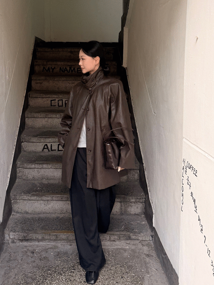 時髦叛逆排釦長皮外/兩色