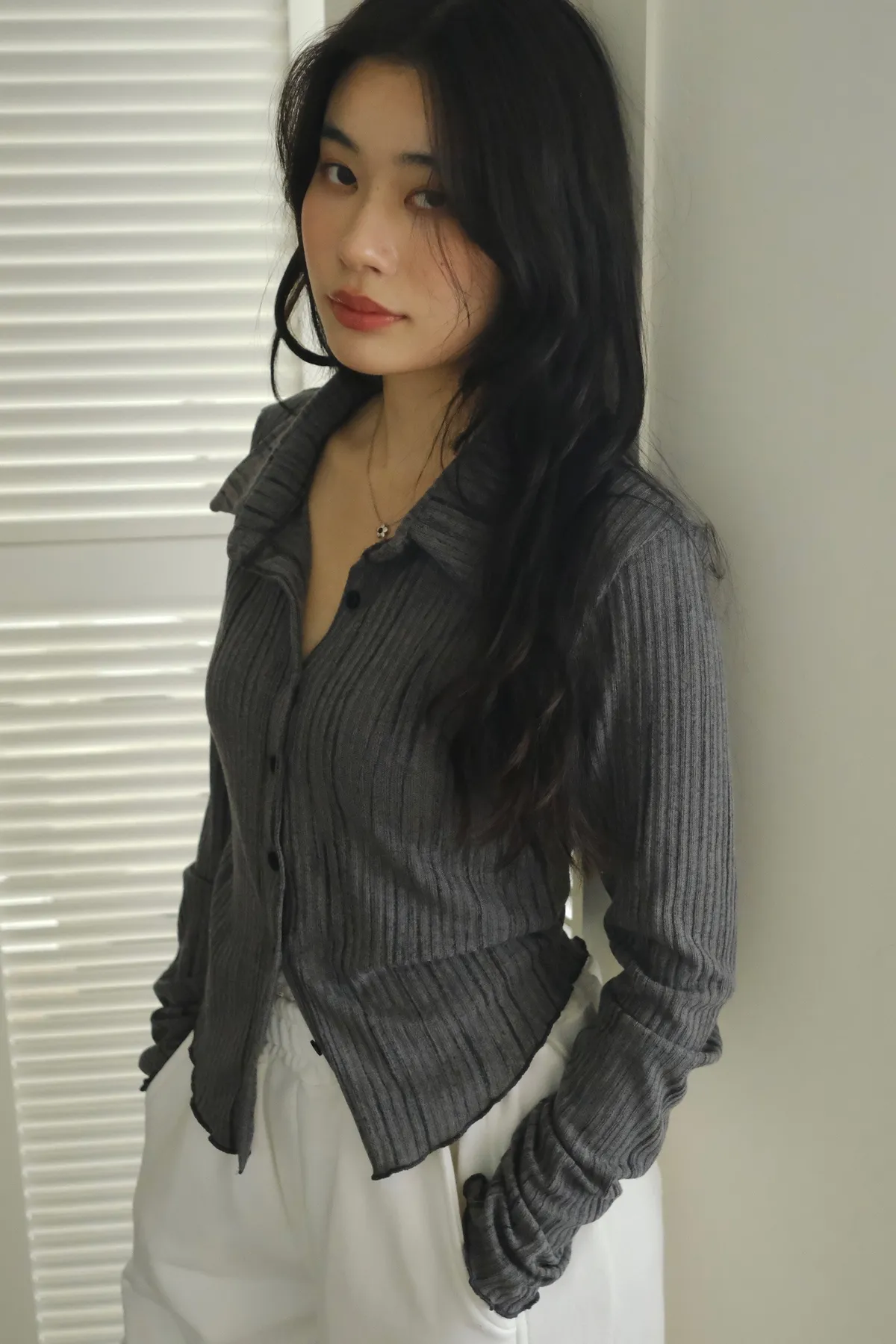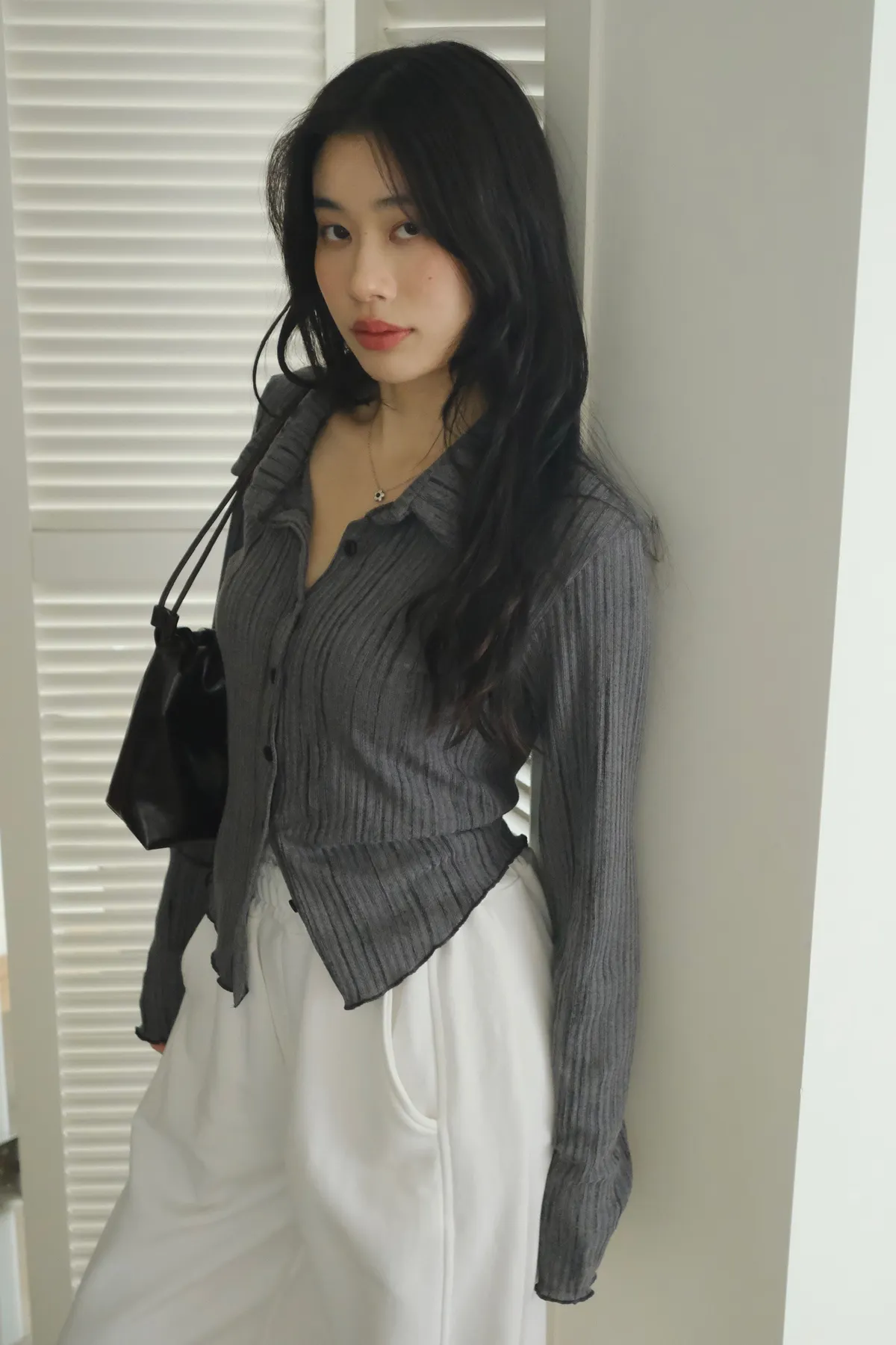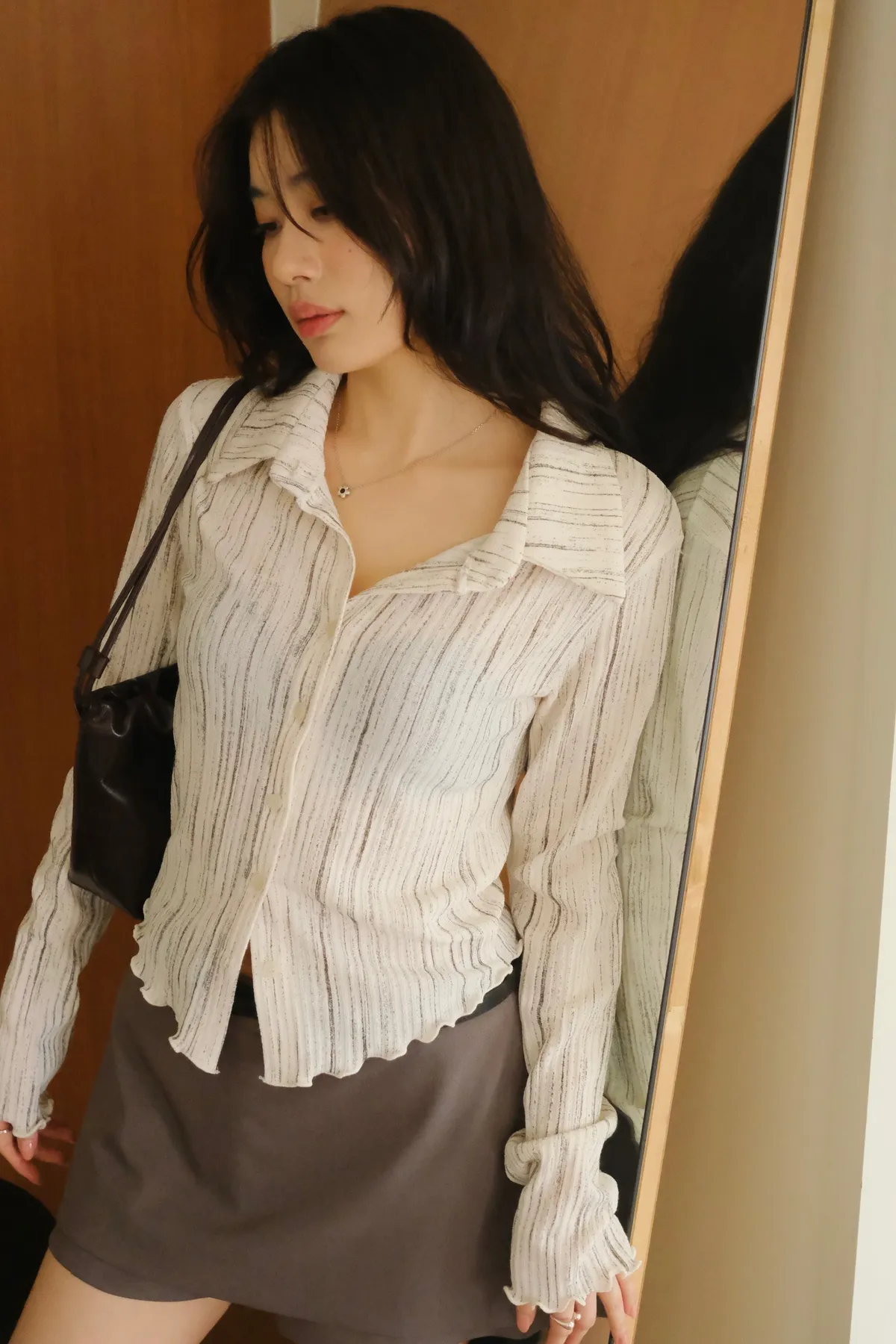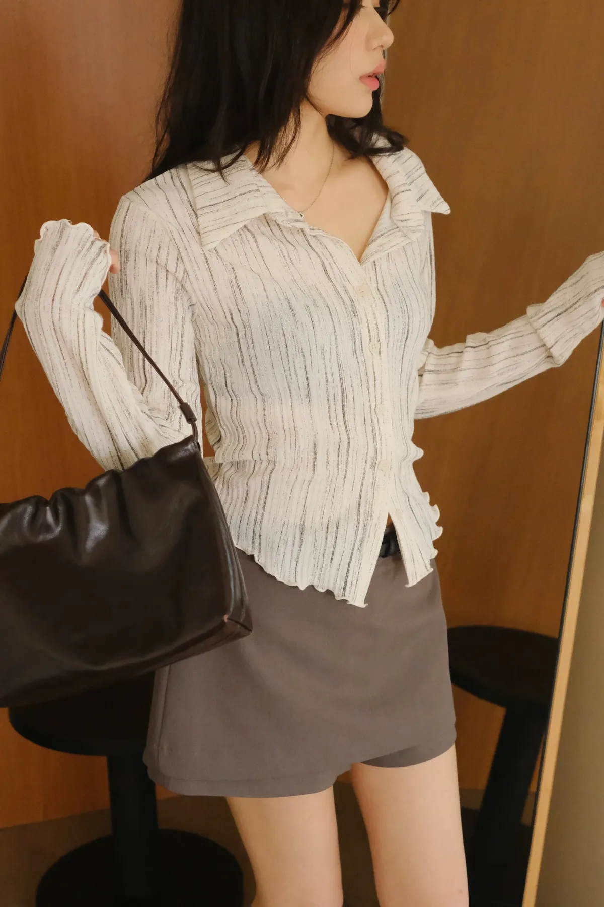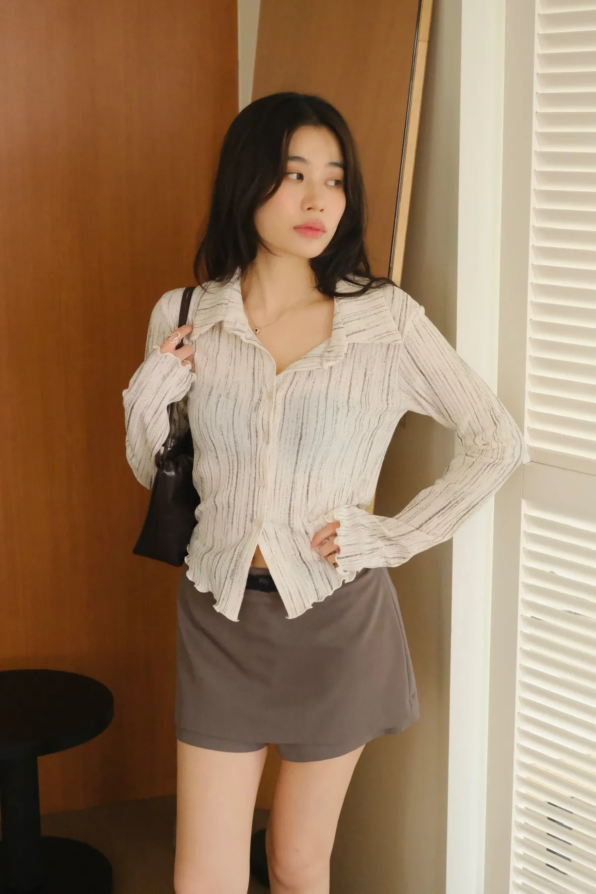翻領設計搭配袖口下擺的木耳邊