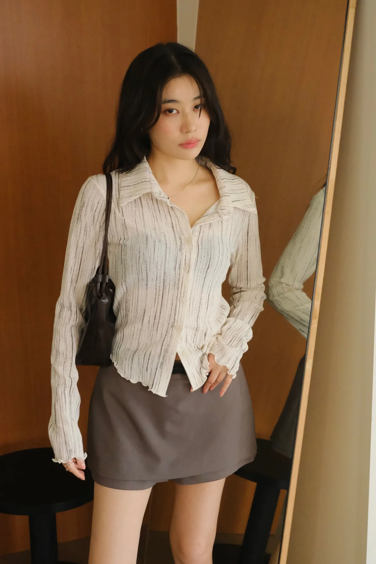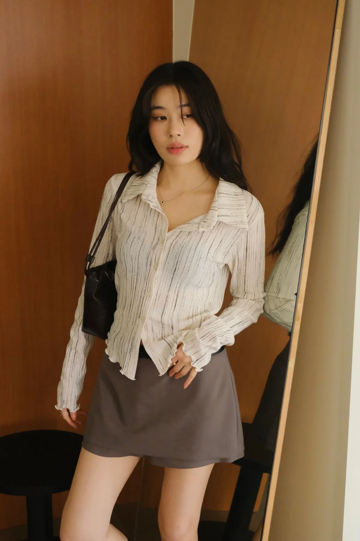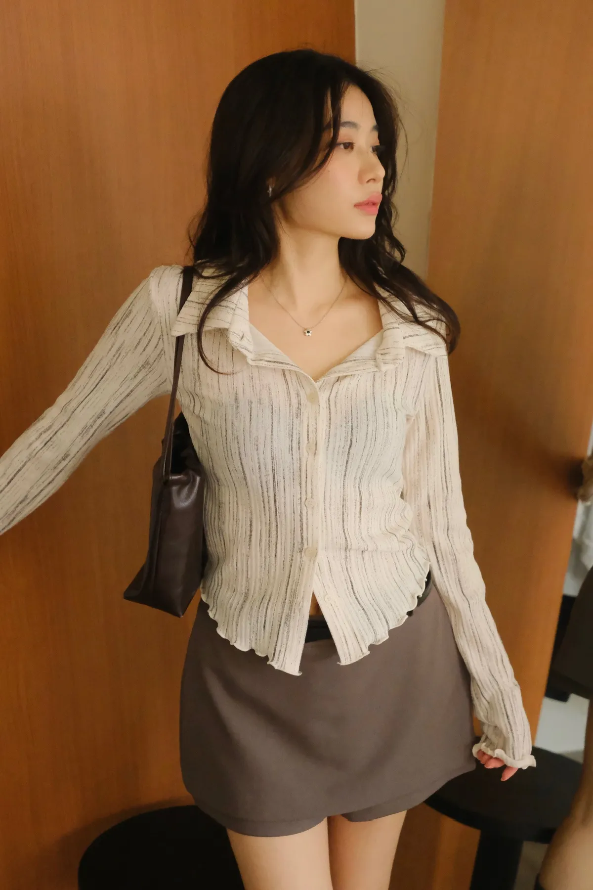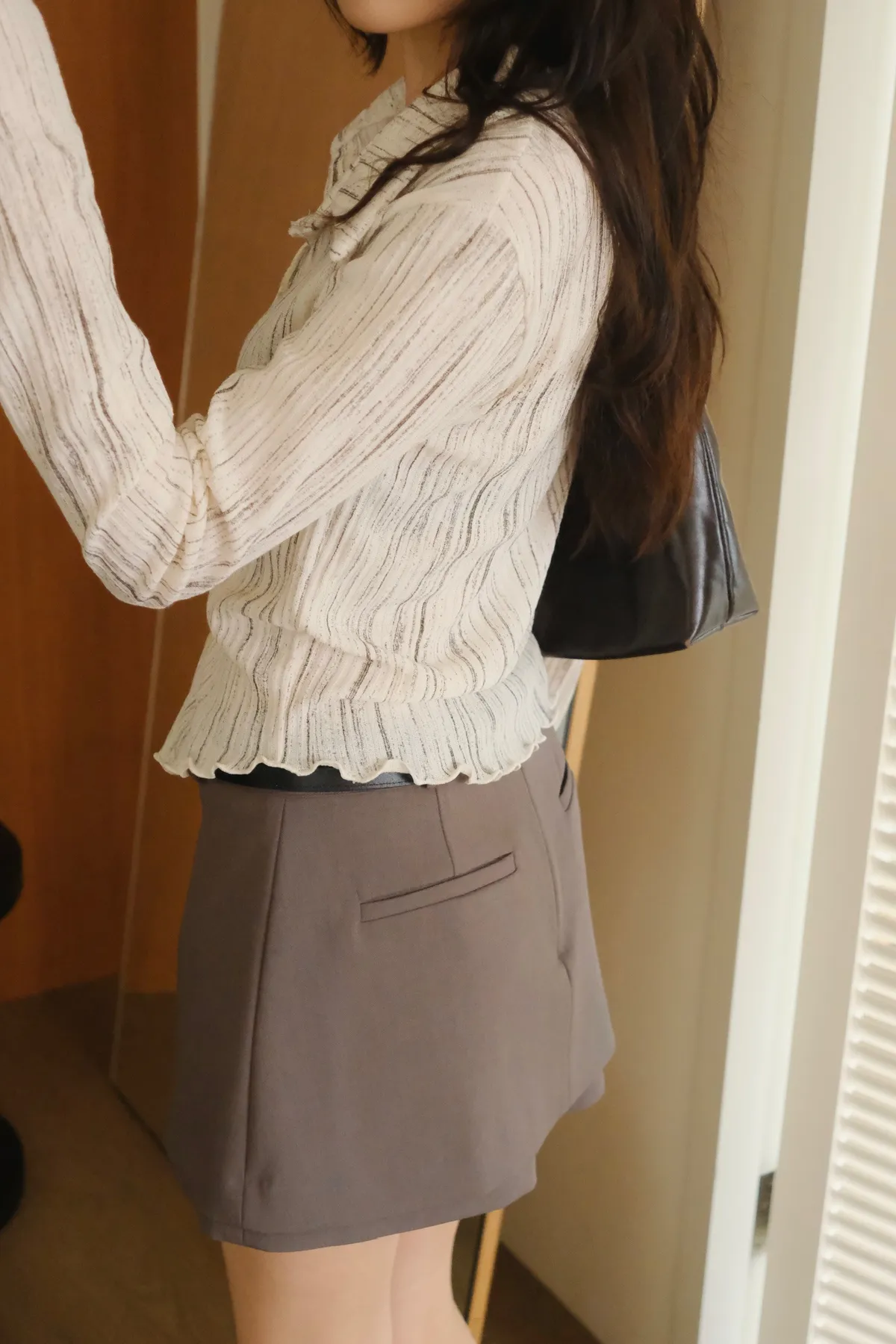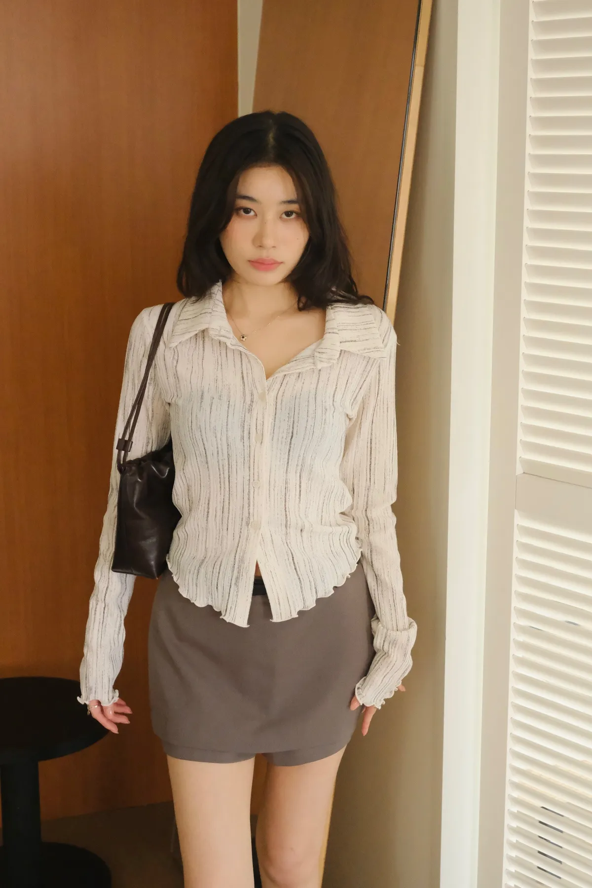 翻領設計搭配袖口下擺的木耳邊