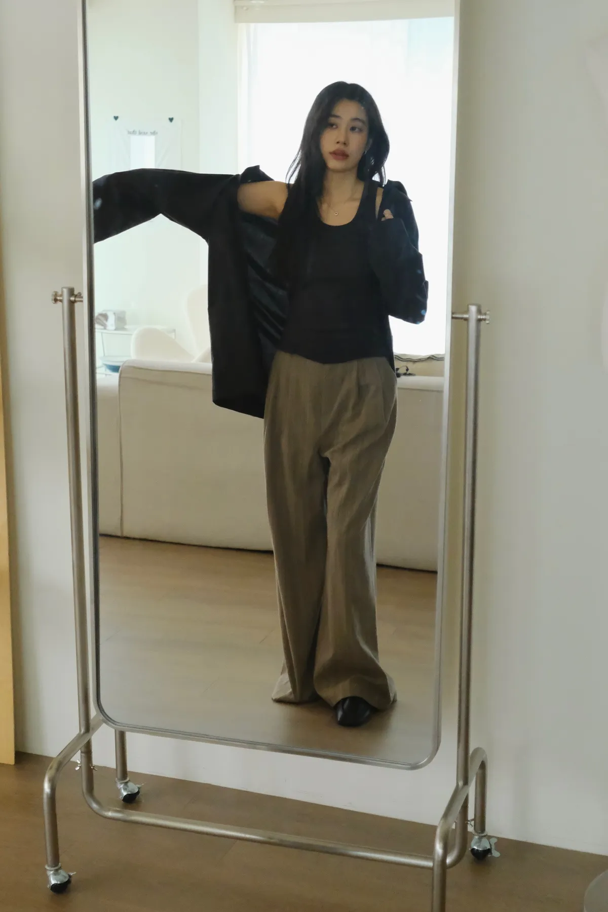 版型帶有西裝的俐落感