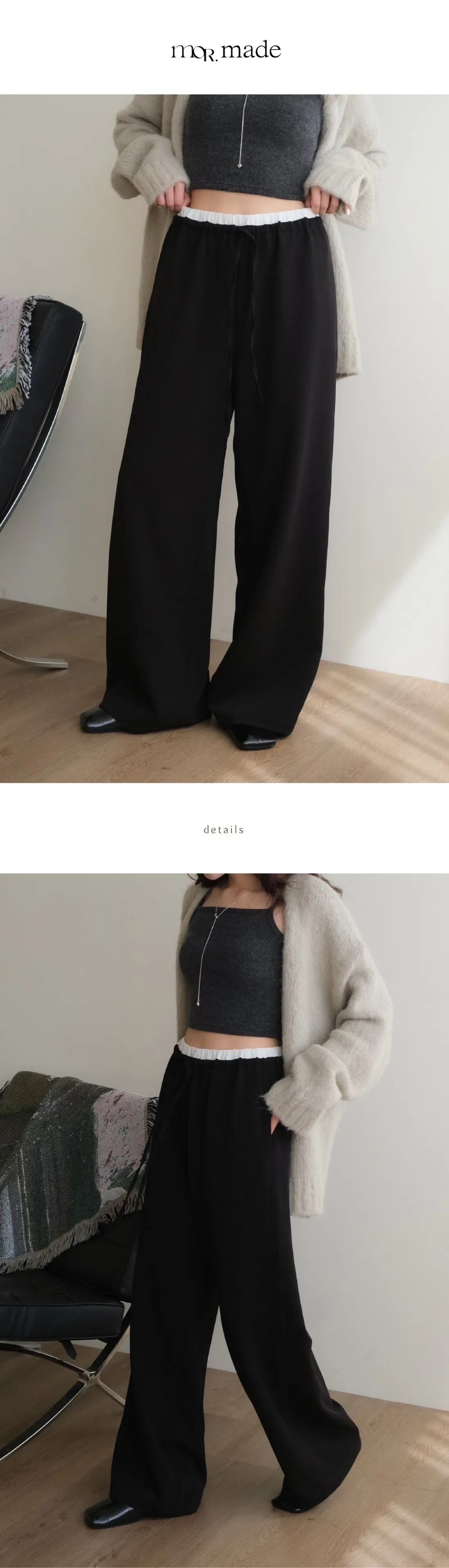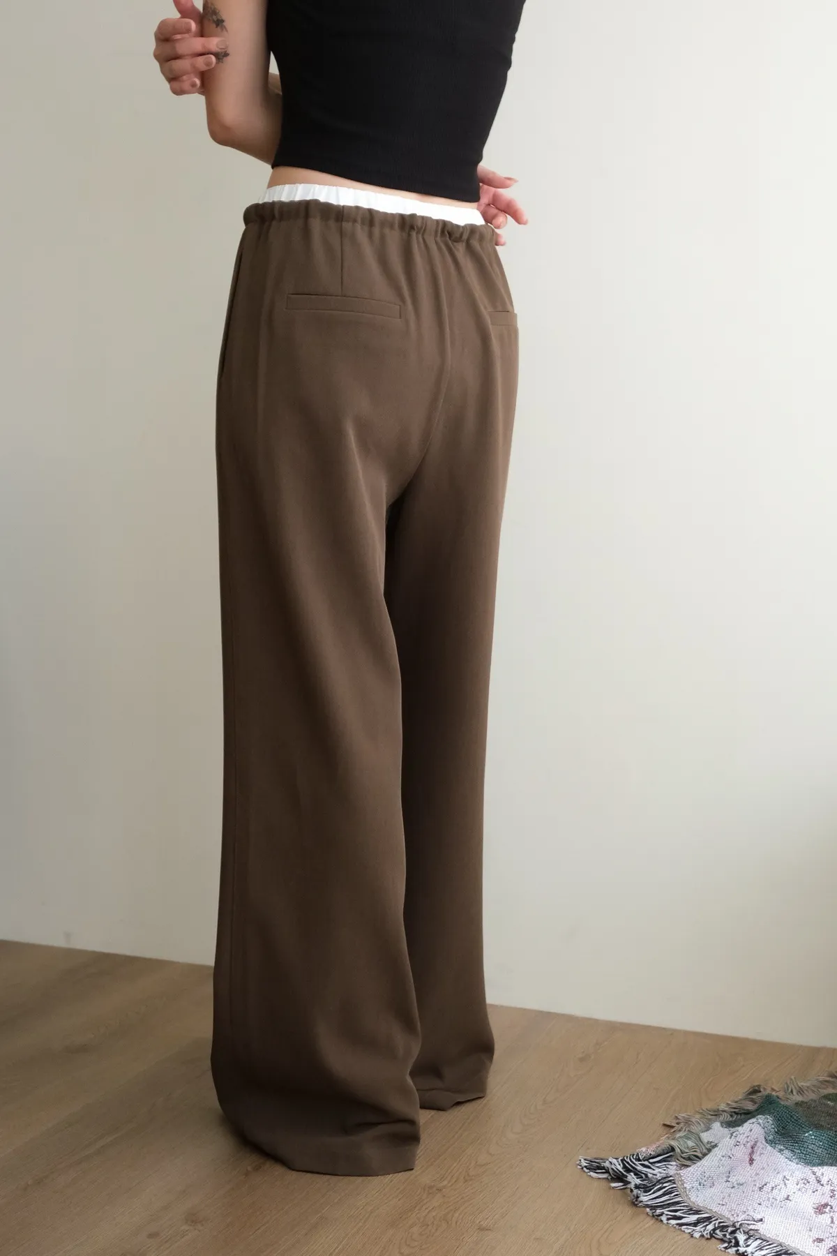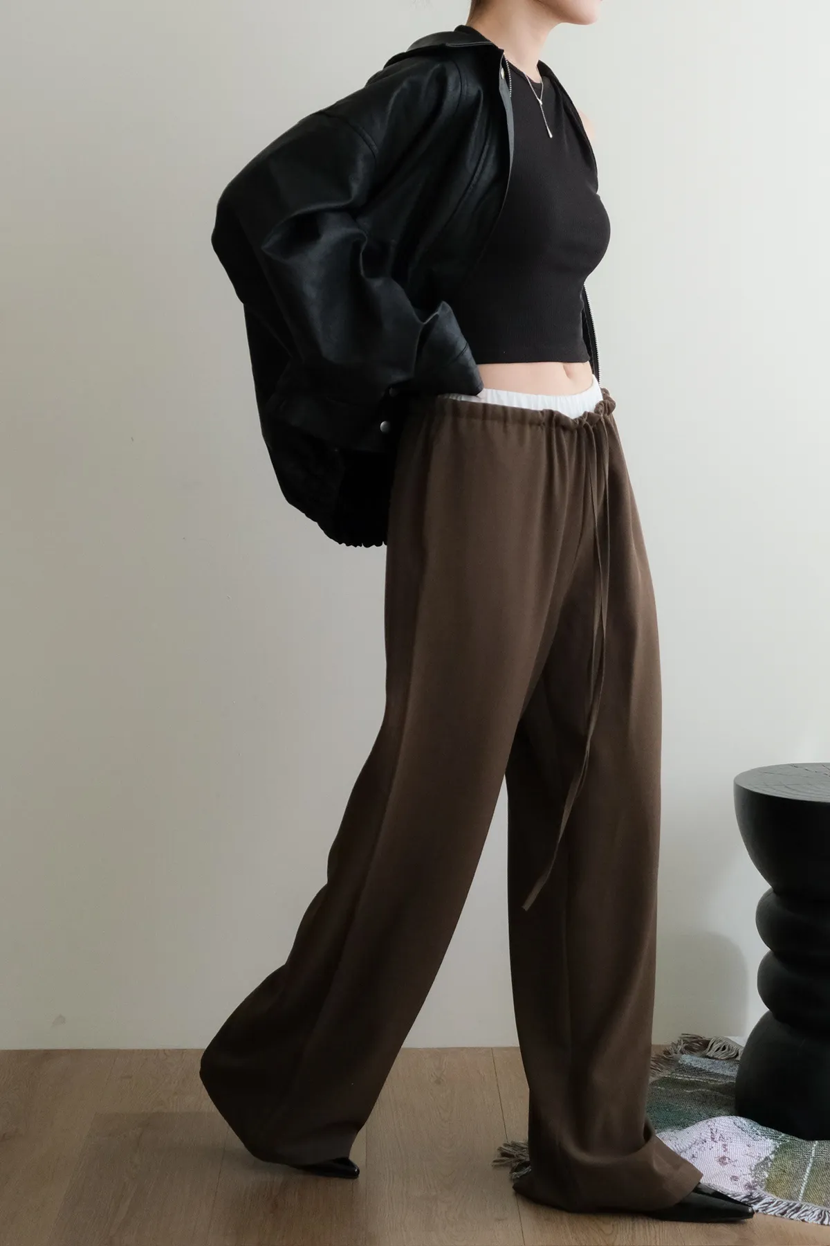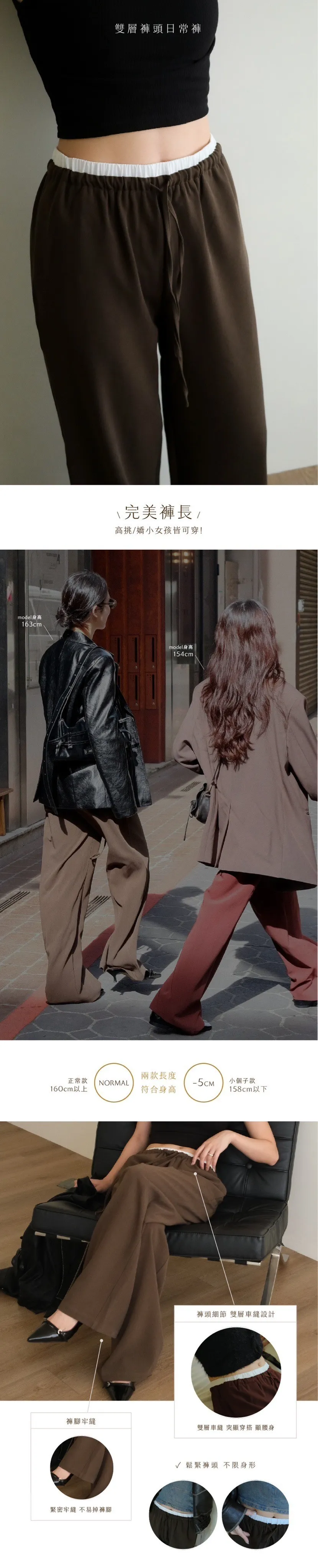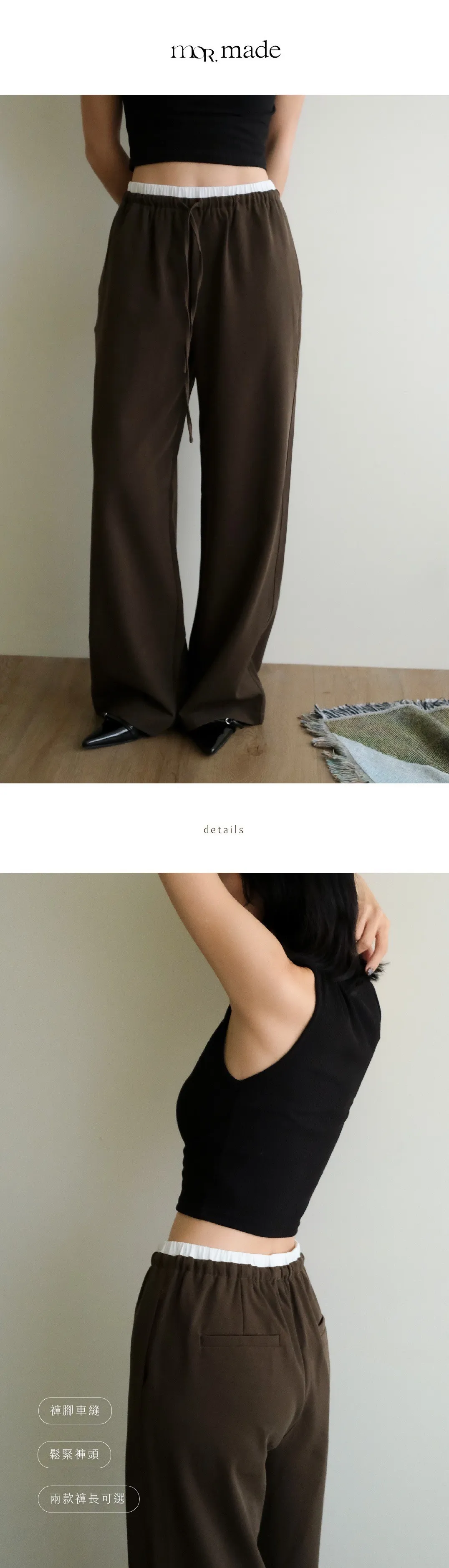 雙層褲頭搭配抽繩設計並採用西裝布面料
