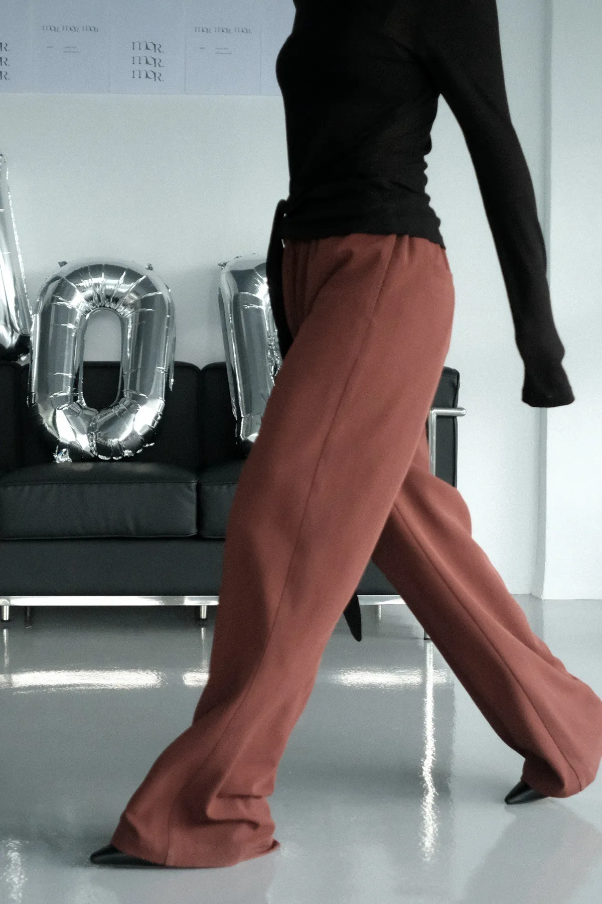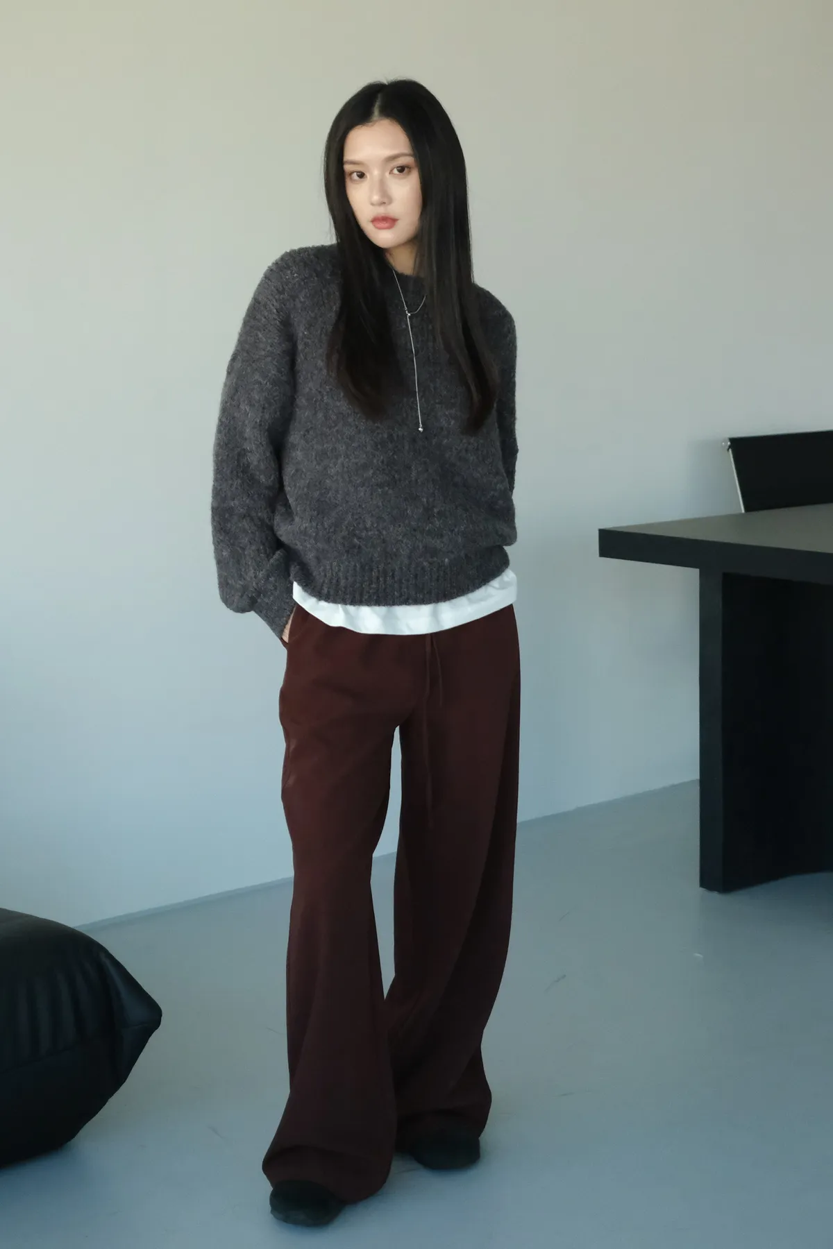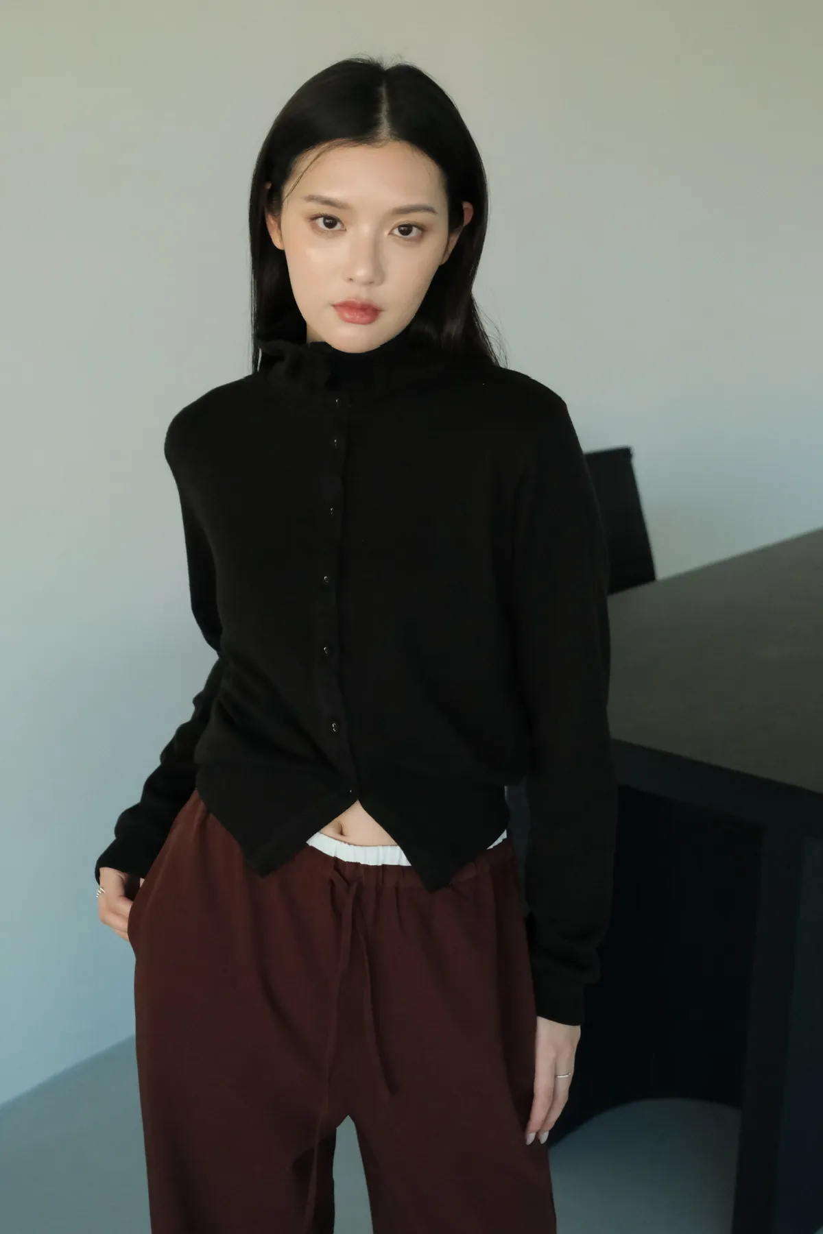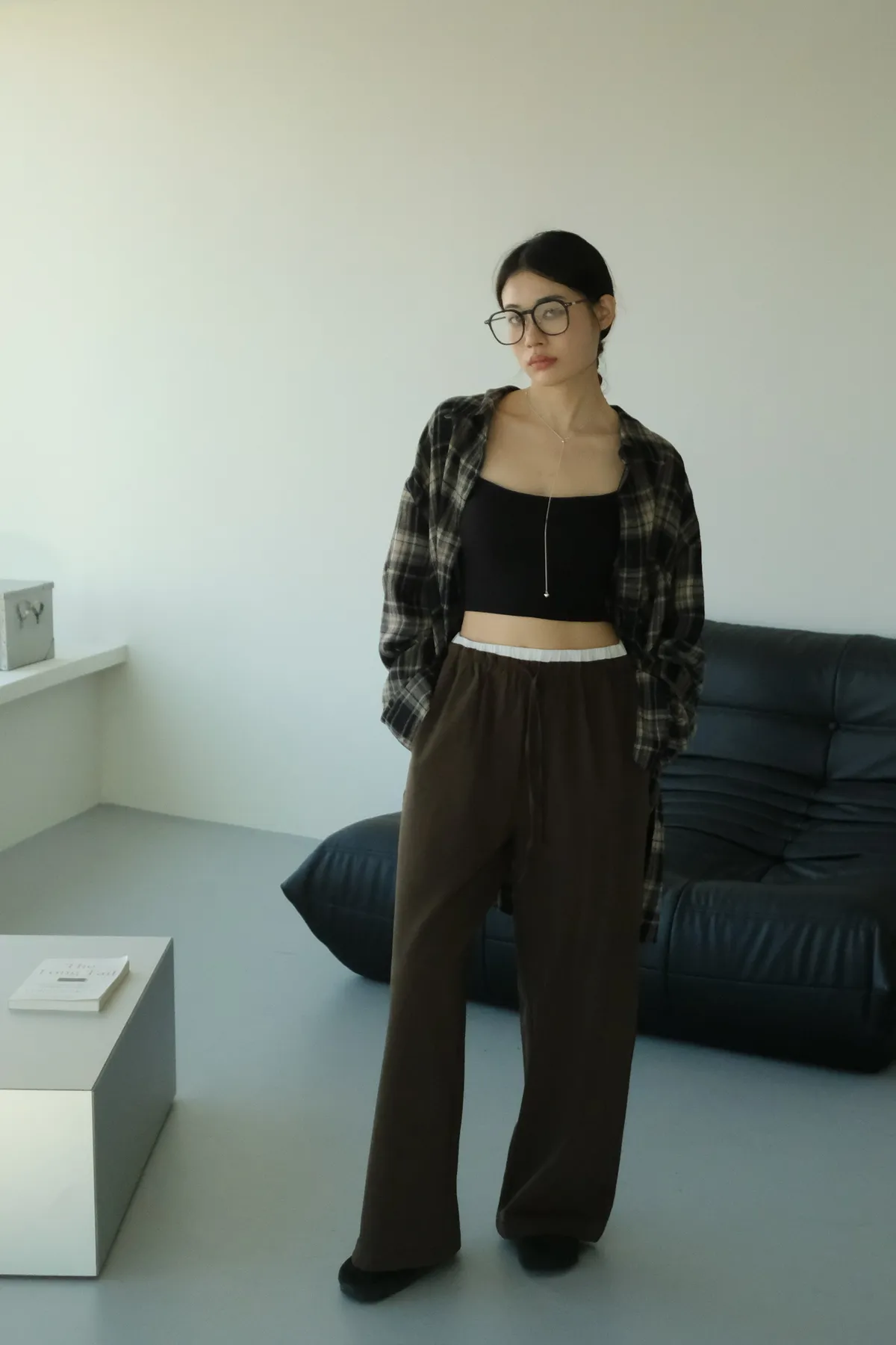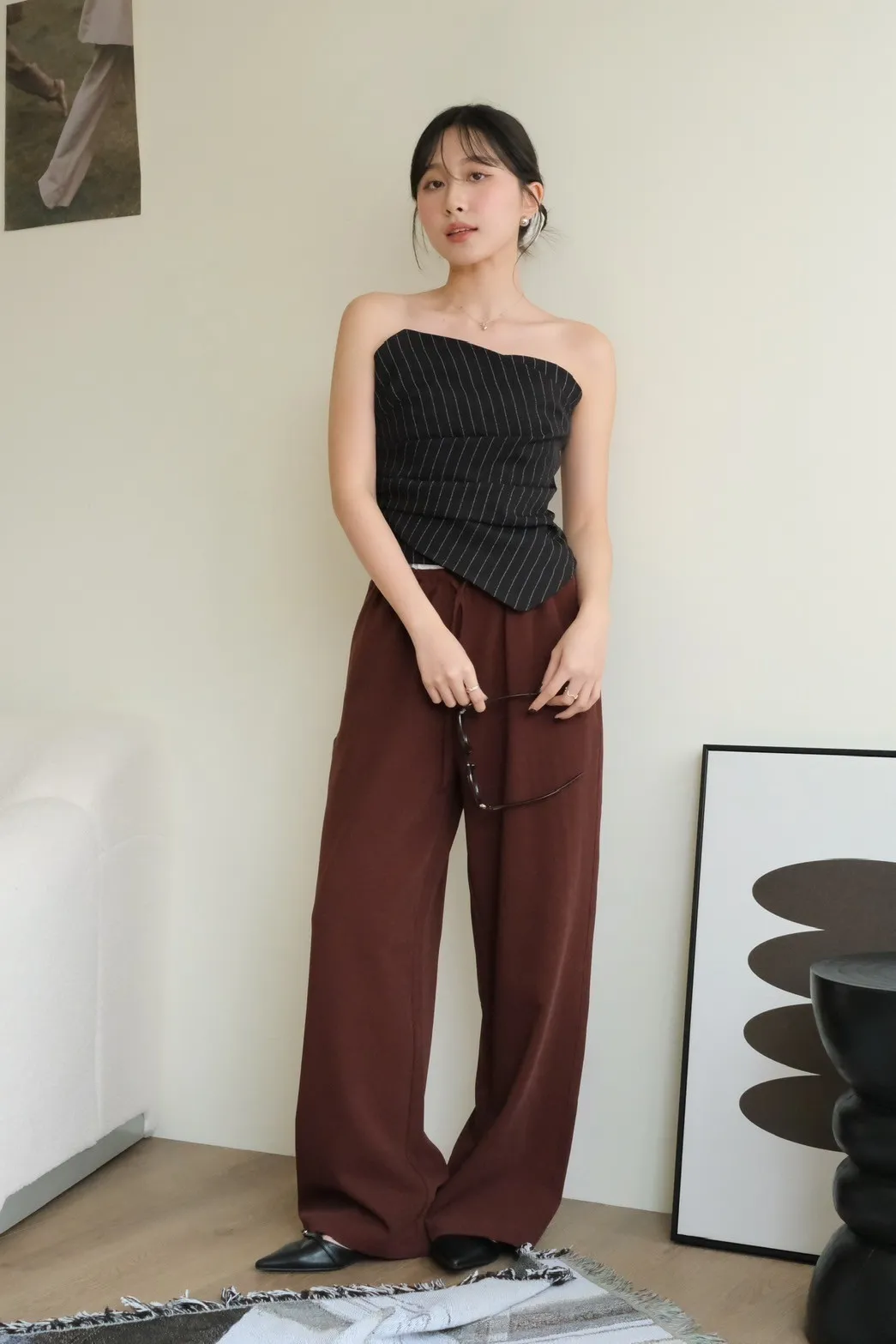 雙層褲頭搭配抽繩設計並採用西裝布面料