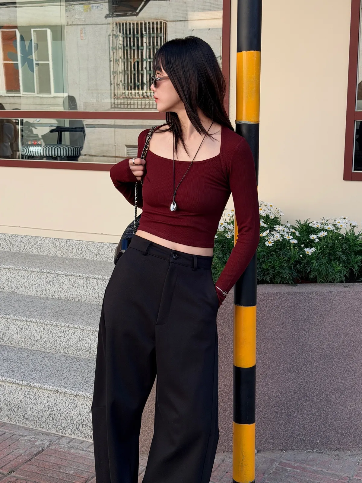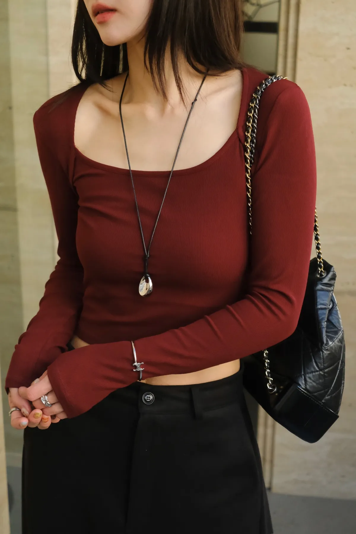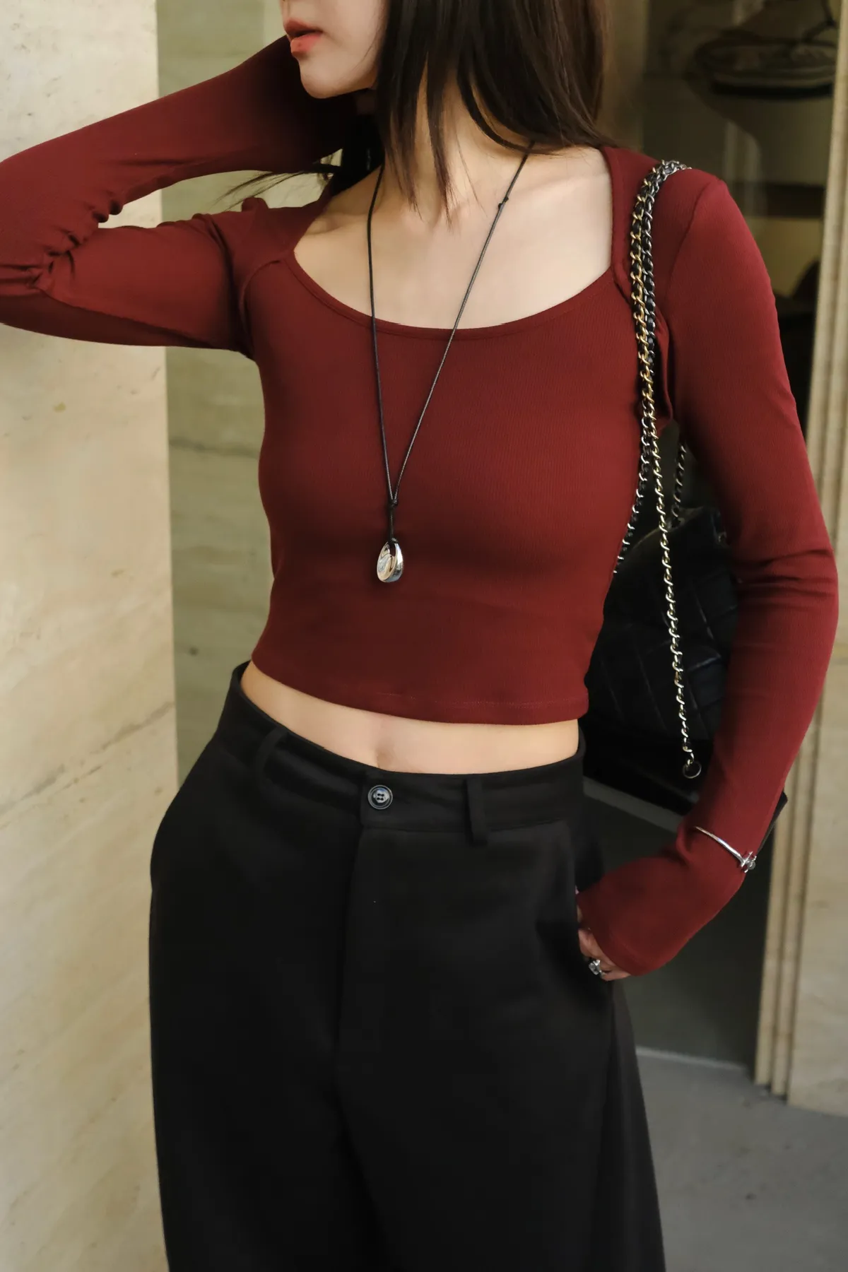 搭配高腰下身更拉長比例